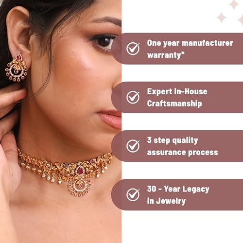 • BRAND & WARRANTY: Tarinika is a leading brand in high-quality traditional Indian jewelry sets. Our raw materials (base metal, plating material and stones) go through a stringent 3 step quality assurance process. Each piece is handcrafted in our own workshop by the best craftsmen in the industry to give our customers the best design and quality possible. All our products come with a 1 year manufacturer's warranty*. *T&C apply - detailed T&C available on our website