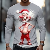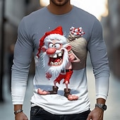 More information about Christmas Men's 3D Old Man T Shirt Long Sleeve T shirt 3D Print Crew Neck Shirt Fashion Basic Street Casual Daily Light Blue Dark Grey#1 Purple Summer Spring Clothing Apparel S M L XL XXL XXXL