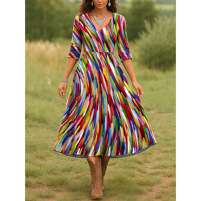 Women's Midi Dress Casual Dress A Line Dress Vacation Casual Regular Fit Floral Graphic 3/4 Length Sleeve V Neck Pink Red Navy Blue Blue Spring Fall 11