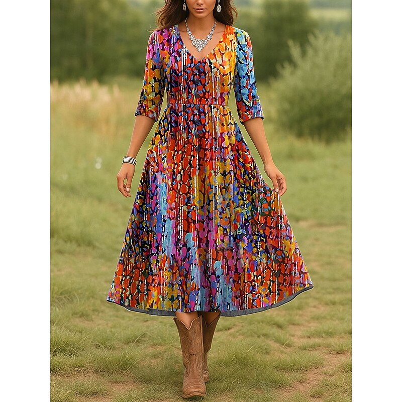 More information about Women's Midi Dress Casual Dress A Line Dress Vacation Casual Regular Fit Floral Graphic 3/4 Length Sleeve V Neck Pink Red Navy Blue Blue Spring Fall