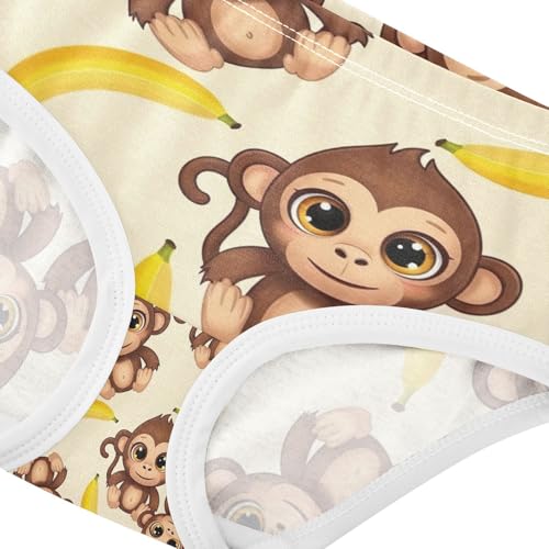 Kids Underwear, Cute Cartoon Monkeys Yellow Toddler Girl Panties, Girls' Cotton Brief Underwear, 2T–8 Years 2