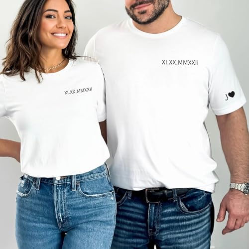 HOT ! Custom Embroidered Roman Numeral T-Shirt Personalized Couple Matching Tee Anniversary Valentine Engrament Gift for Couples