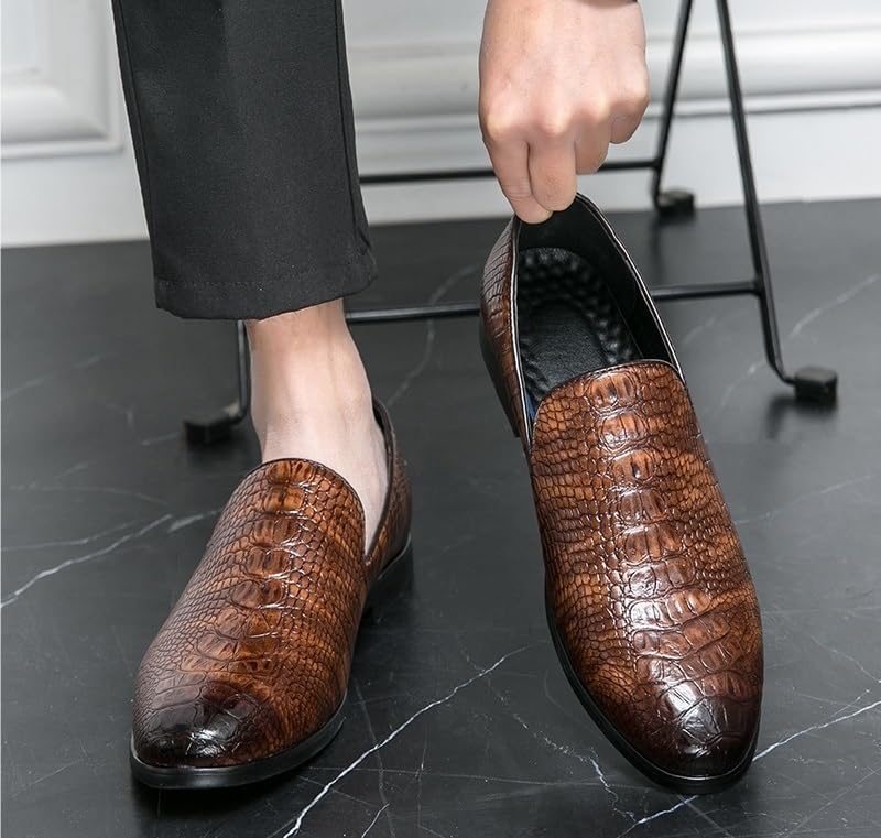 HOT ! Oxford Shoes for Men Slip On Pointed Burnished Toe Crocodile Print Loafer Non Slip Low Top Slip Resistant Outdoor