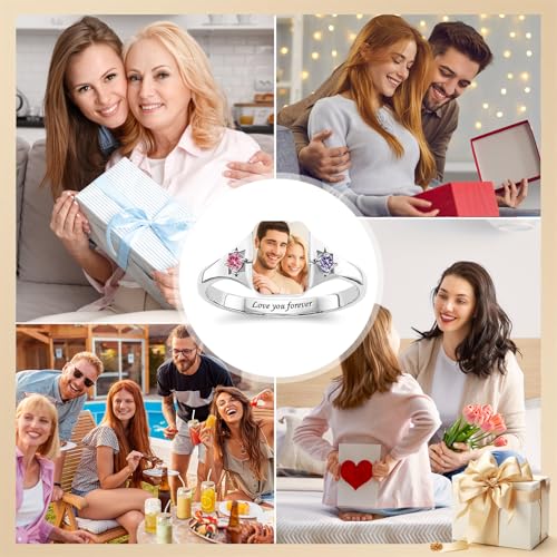 • Personalized Birthstone & Photo Ring: Make a statement with this gorgeous memorial rings, uniquely customized with your special photo (like a loved one) and chosen birthstones, creating a meaningful symbol of love and devotion.