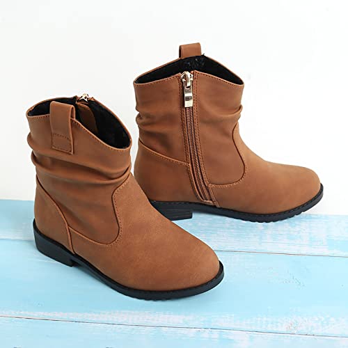 More information about Girls Zip Side Slouchy Boots Western Boots Kids Ankle Boots Girls Low Heel Riding Booties With Zipper Girl Boots Size 4