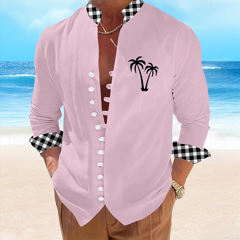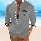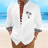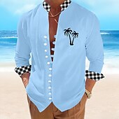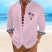 More information about Men's Coconut Palm Casual Shirt Summer Hawaiian Shirt Aloha Shirt Short Sleeve Hawaiian Resort Vacation Casual Summer Spring Standing Collar Button Up White Pink Blue Gray