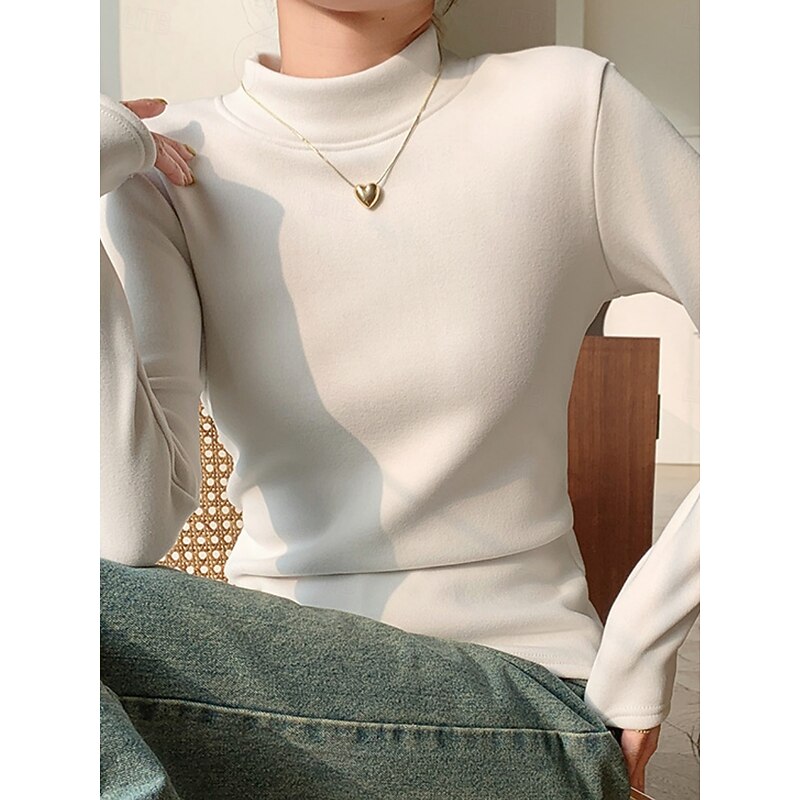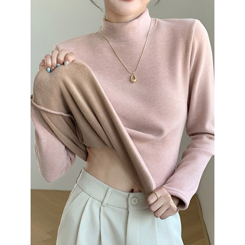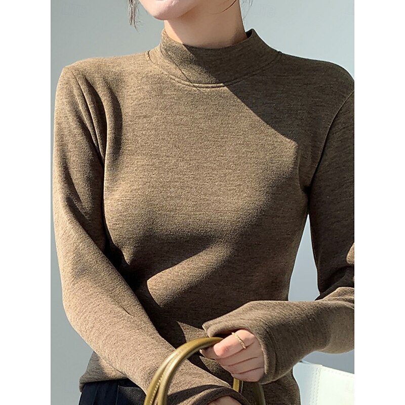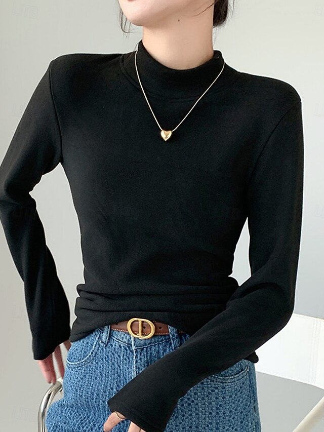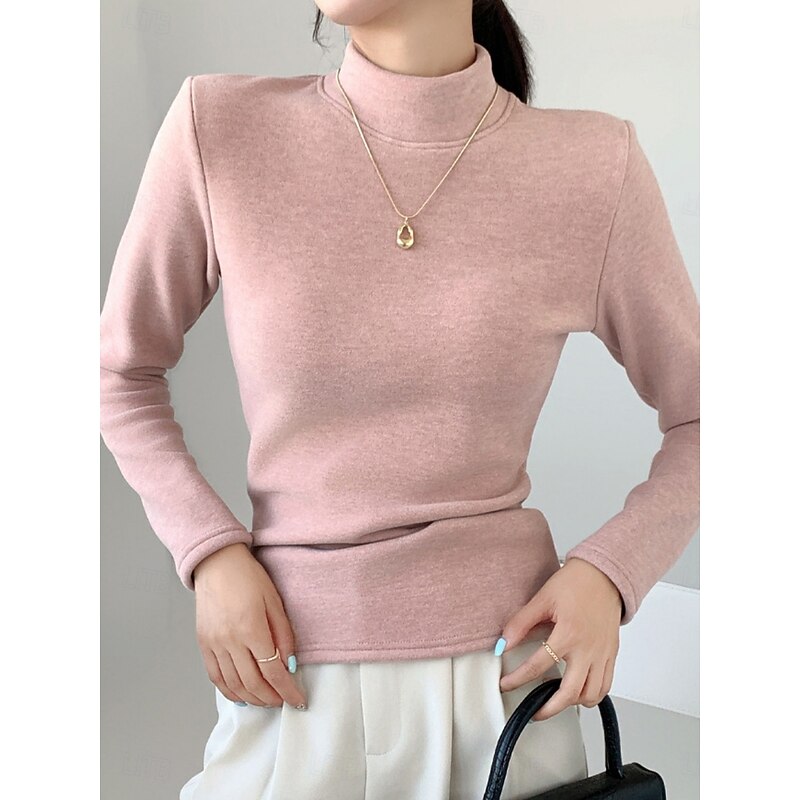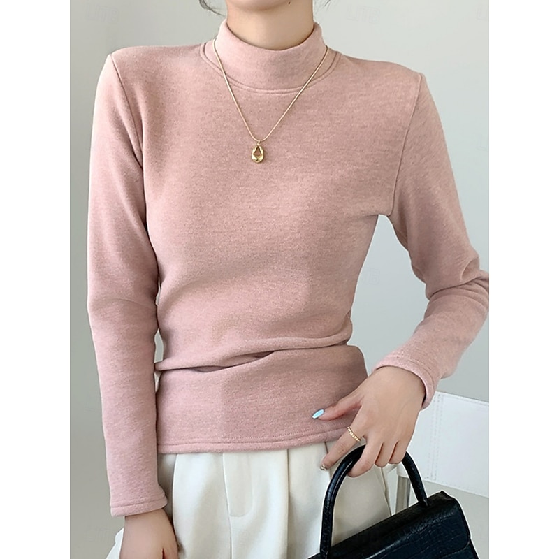 More information about Women's Blouse Solid Color Stylish Casual Long Sleeve Turtleneck Regular Tops Daily Black Pink Brown Green Khaki Spring Fall Winter