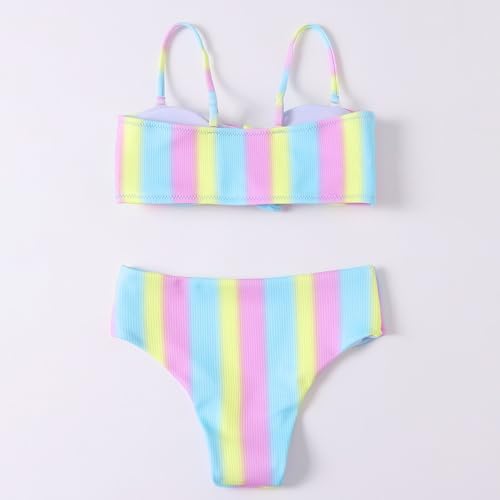 Girls Swimming Bathing Suit 𝐇awaiian Bikini Swimsuit 2-Piece Summer Cute Rainbow Strap Hollow Out Top & Bottoms 6