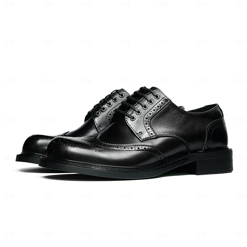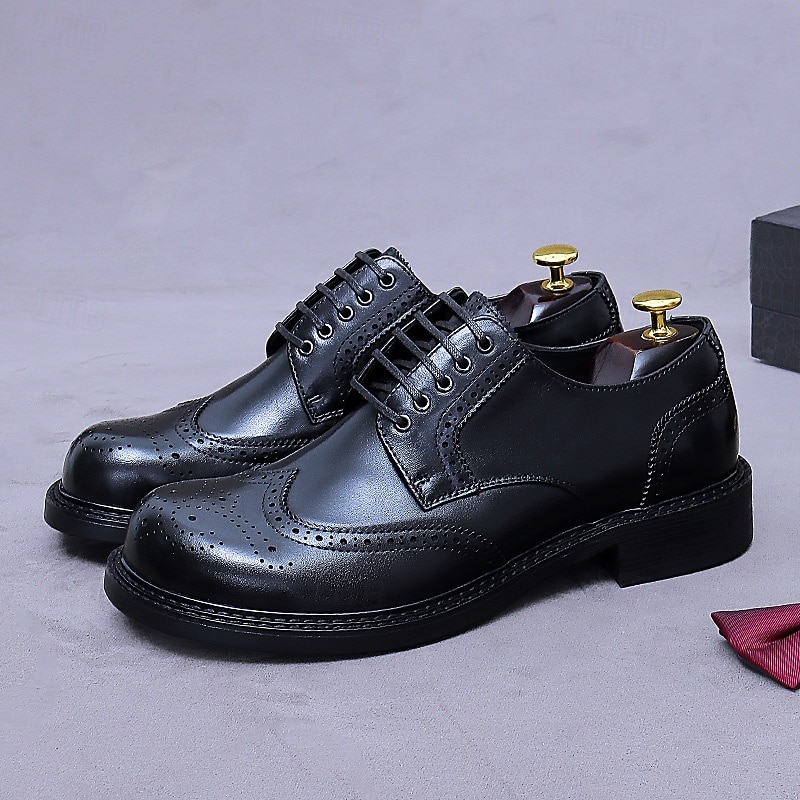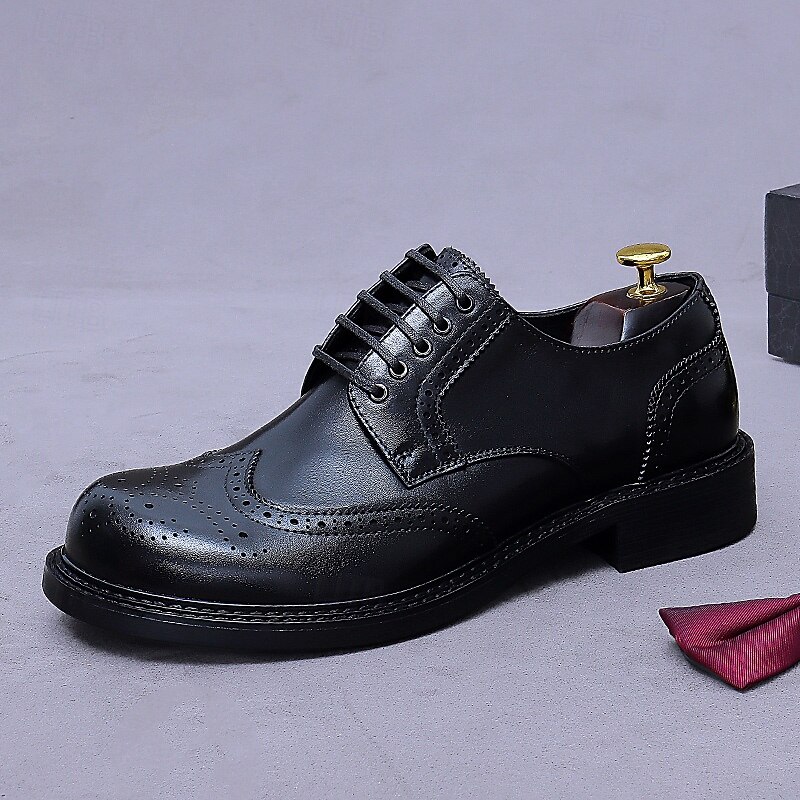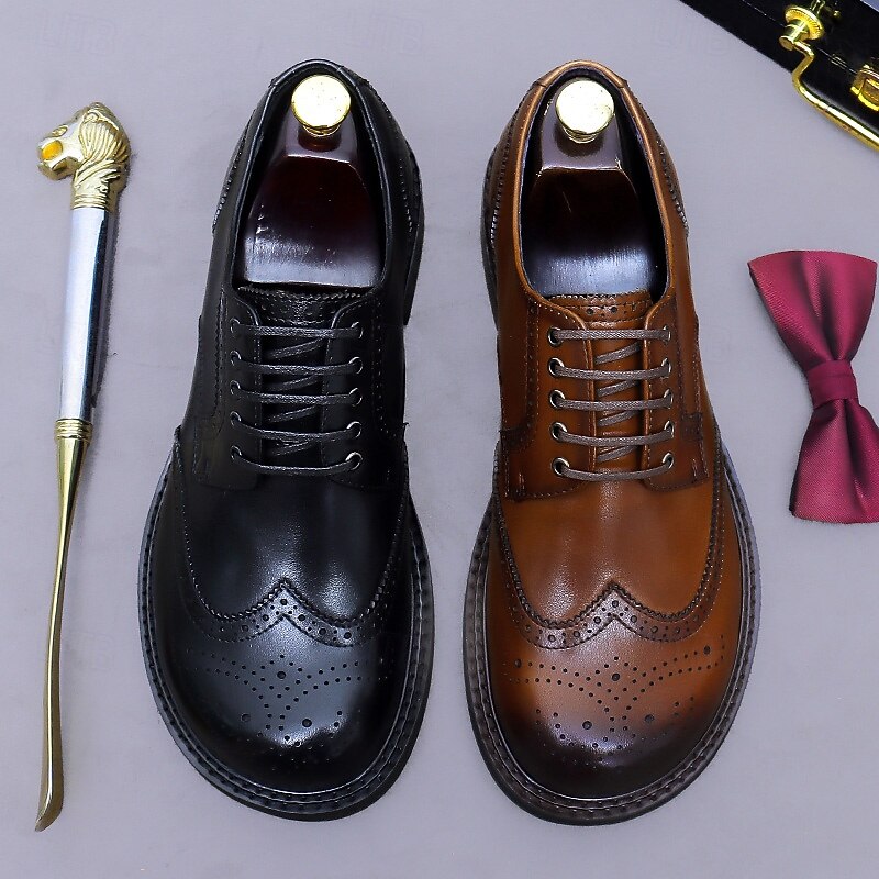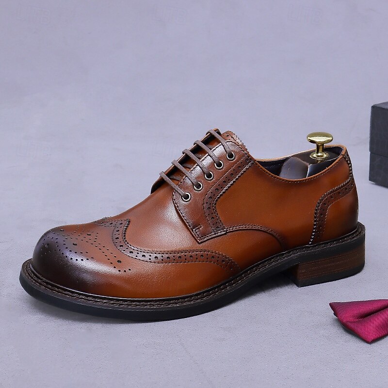 HOT ! Men's Brown Leather Oxford Dress Shoes- Premium Full Grain Cowhide Brogues with Wingtip Detailing, Classic Lace-Up Design for Business Attire, Formal Meetings, and Office Wear