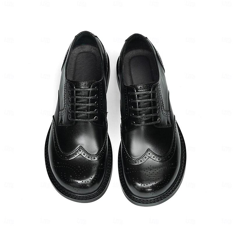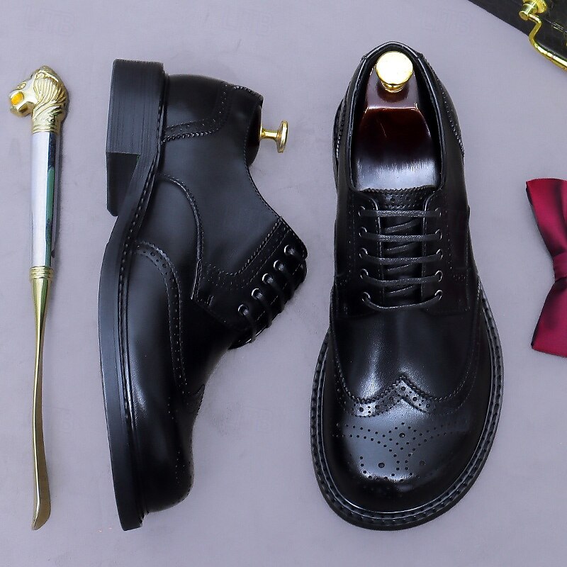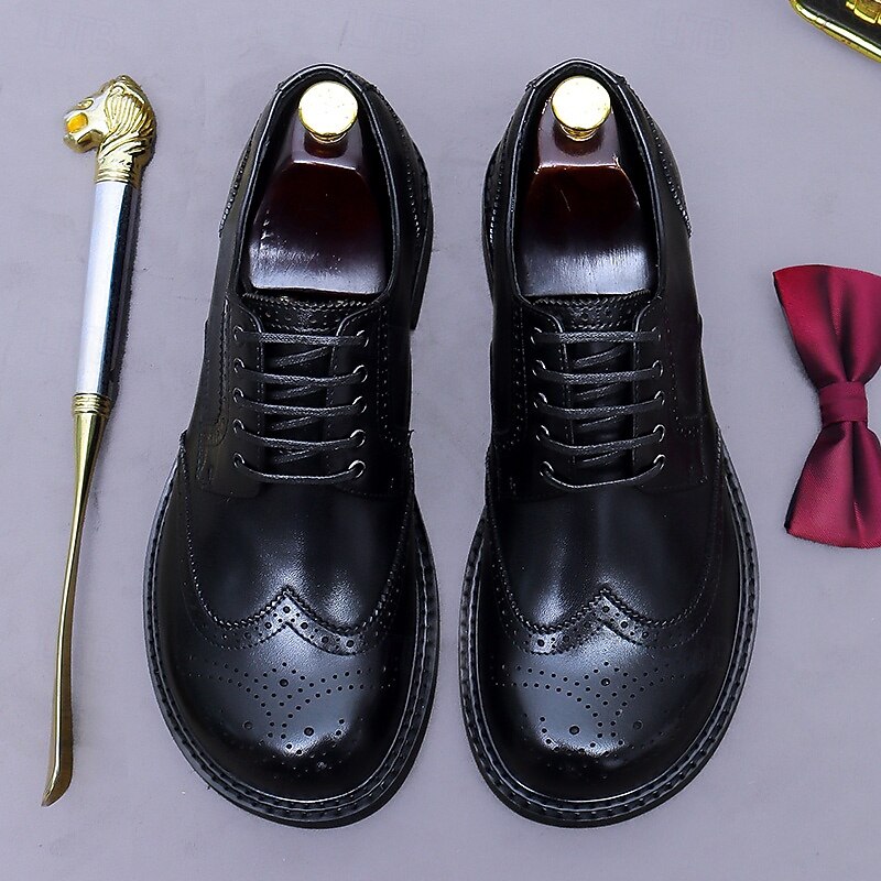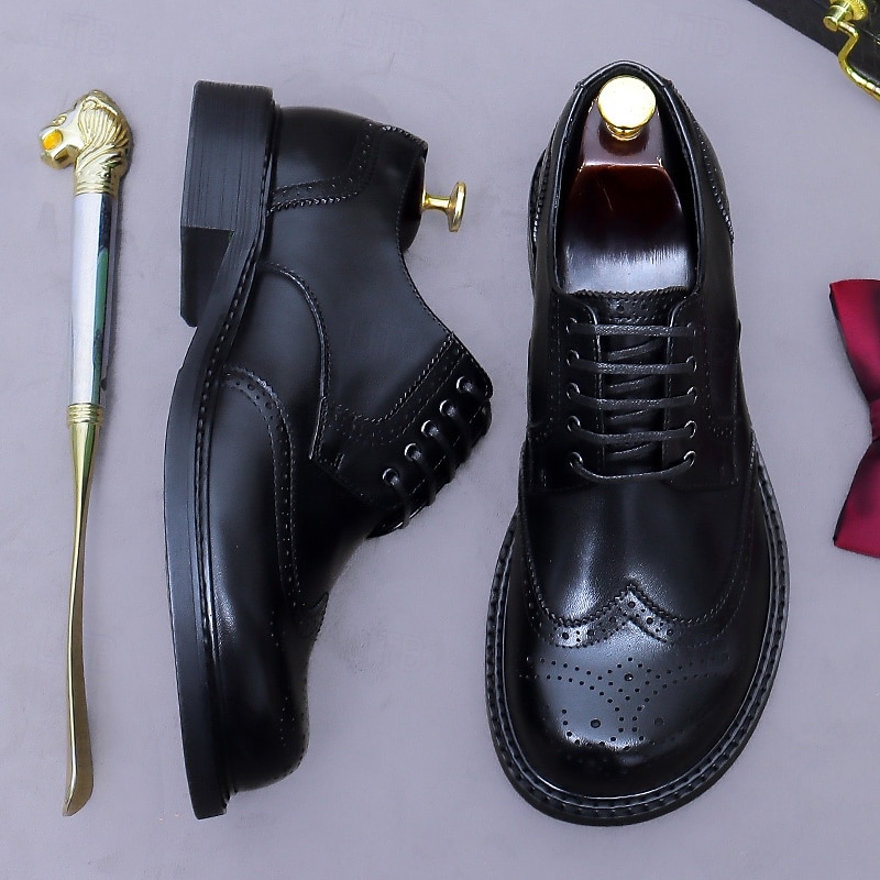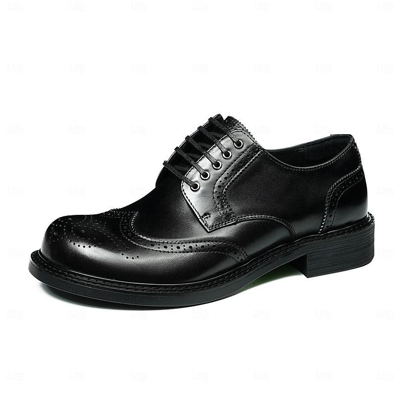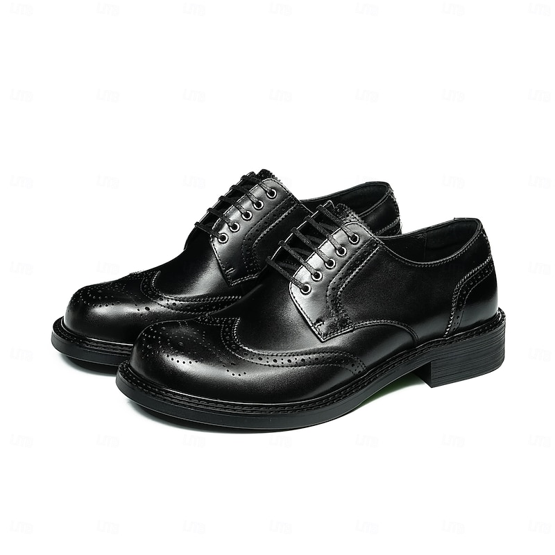 HOT ! Men's Brown Leather Oxford Dress Shoes- Premium Full Grain Cowhide Brogues with Wingtip Detailing, Classic Lace-Up Design for Business Attire, Formal Meetings, and Office Wear