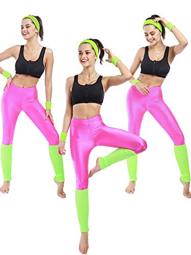 SATINIOR 80s Neon Leggings Party Retro Jogging Sports Headband Wristbands Leg Warmers 5