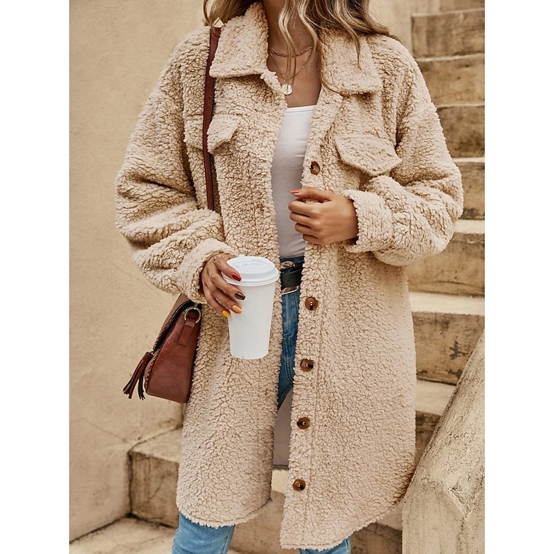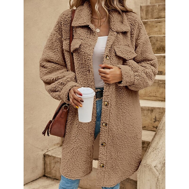 $15.99 - Women's Sherpa Jacket Comfortable Breathable Pocket Buttons Casual Plain Vacation Street Casual Daily Wear Single Breasted Long Turndown Loose Fit Long Sleeve Outerwear Black White Red Spring Fall 2025. Shop for cheap Fleece-Lined Jackets online? Buy at lightinthebox.com on sale today!