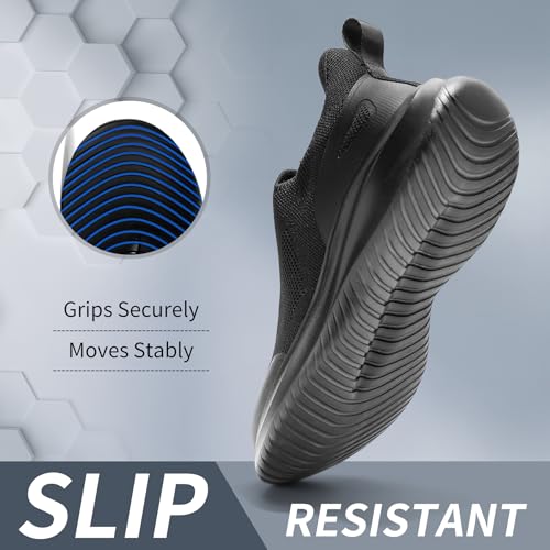Men's Slip On Walking Shoes Non Slip Running Tennis Sneakers Cushion Cross Training Laceles Lightweight Breathable Athletic Gym Workout Casual 5