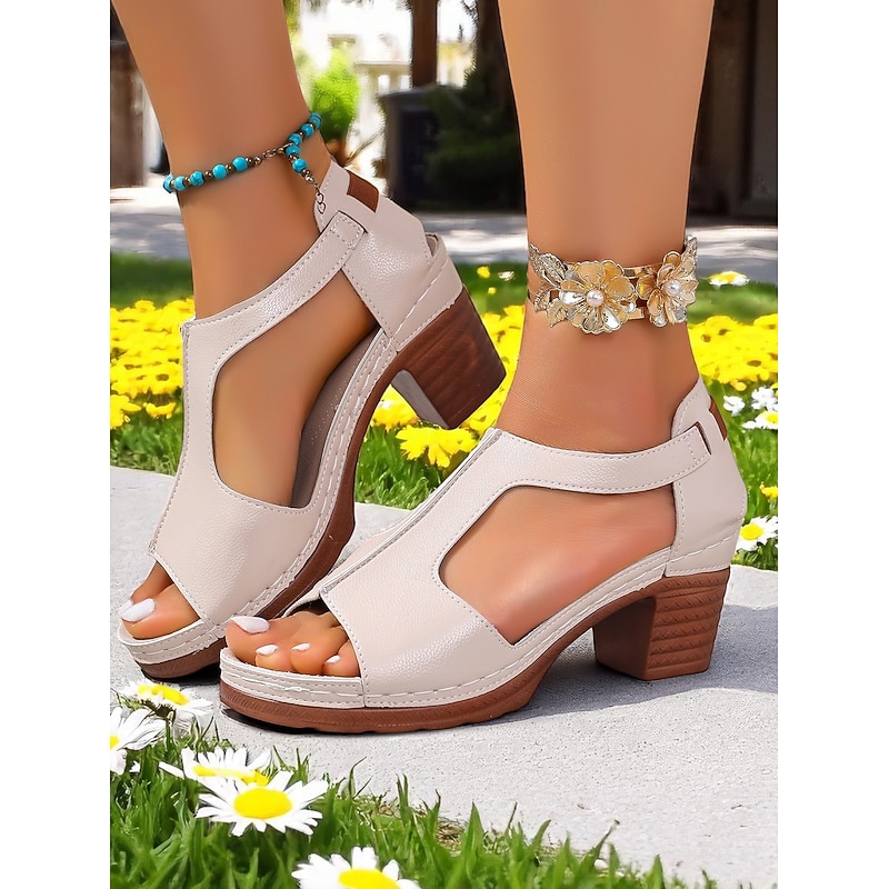 More information about Women's Retro Block Heel Cutout Sandals – Black Faux Leather Comfy Open-Toe Shoes with Chunky Sole for Weekend Markets Outdoor Dining and Garden Parties