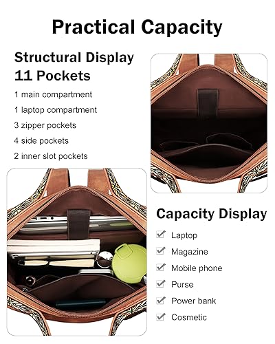 More information about FADEON Leather Laptop Backpack for Women, Designer Ladies Work Travel Computer Backpack with Laptop Compartment Purse Brown