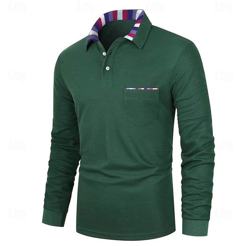 More information about Men's Polo Shirt Golf Shirt Casual Holiday Classic Long Sleeve Fashion Basic Plain Quick Dry Summer Regular Fit Fire Red Black Army Green Dark Navy Grey Polo Shirt