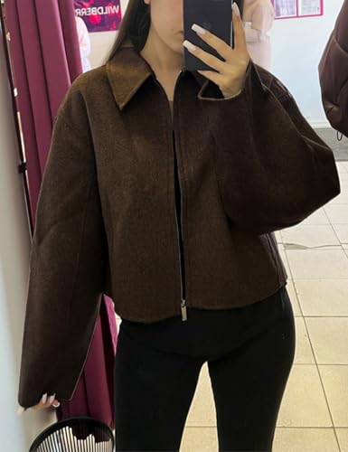 More information about Womens Cropped Wool Jacket Plain Zipper Short Pea Coats Fall Winter Trendy Tweed Jackets 2025