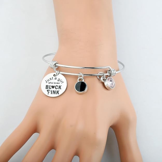• ★Size: Pink Fans Music jewelry engraved ’’Just who lovers ’’.Bracelet diameter is 6.5cm,the pendant is 2.0cm.With Black Birthstone and Pink Birthstone.TIPS: Manual measuring permissible error.