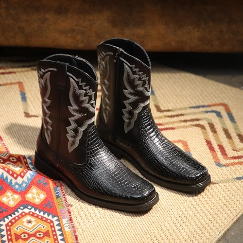 More information about Santimon Men's Crocodile Western Cowboy Boots, Side Zipper, Mid Calf, Silver Stitching, Square Toe Leather Boots