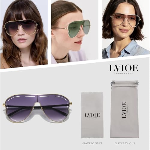 HOT ! LVIOE Aviator Sunglasses for Women Men Oversized Metal Aviator Sun Glasses Trendy Shield Shades UV400 Protection
