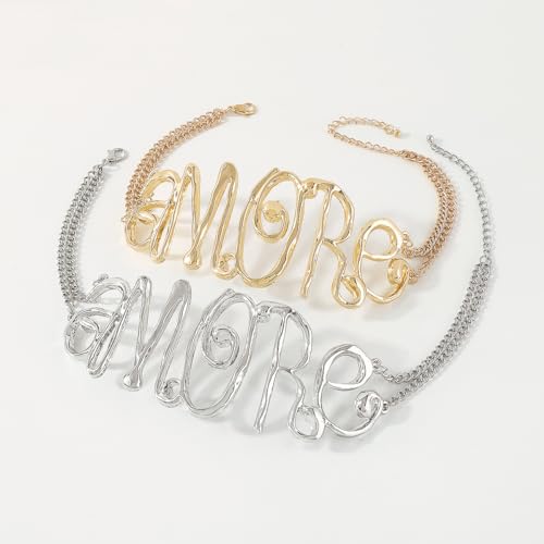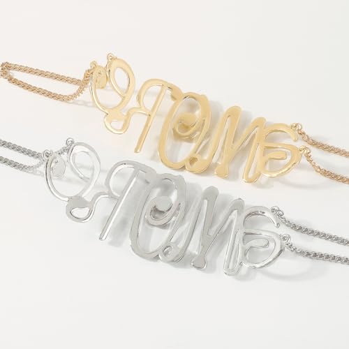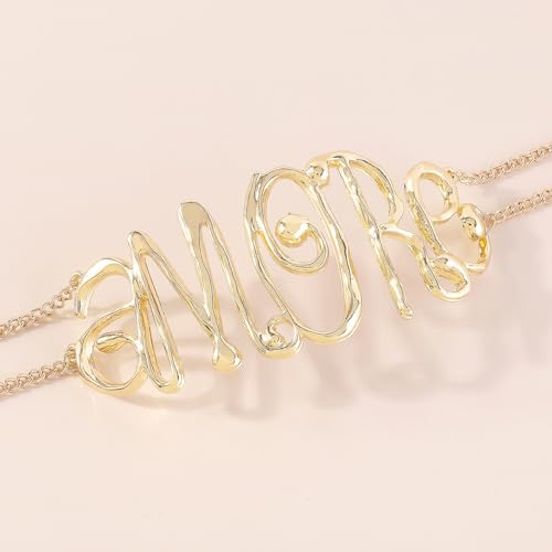 • Stylish Accessory: This statement necklace features the word 'Amore' spelled out in a bold, chunky font using shiny golden metal links.