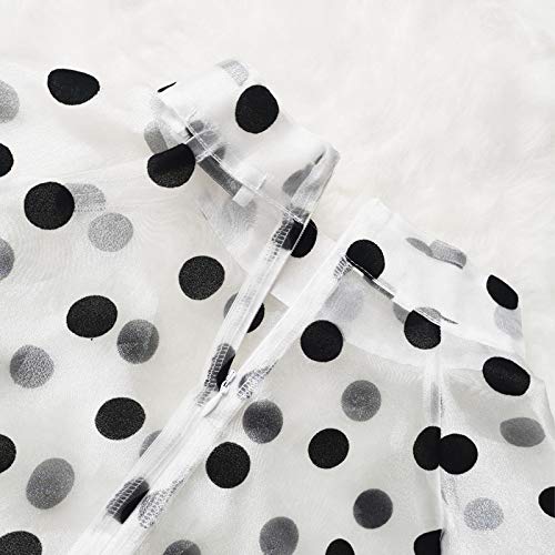 AOMEI Women's Stand Collar Polka Dot See Through Front Tie Peplum Blouse 6