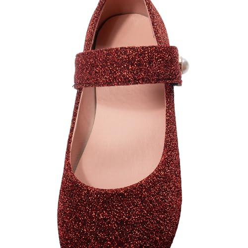 Girl's Retro Penny Pearl Strap Closed Square Toe Low Chunky Heel Snap Comfortable Ballets Work Vintage Office Flats Formal Occasion Concise Dating Wedding Casual Daily Wear Shoes 7