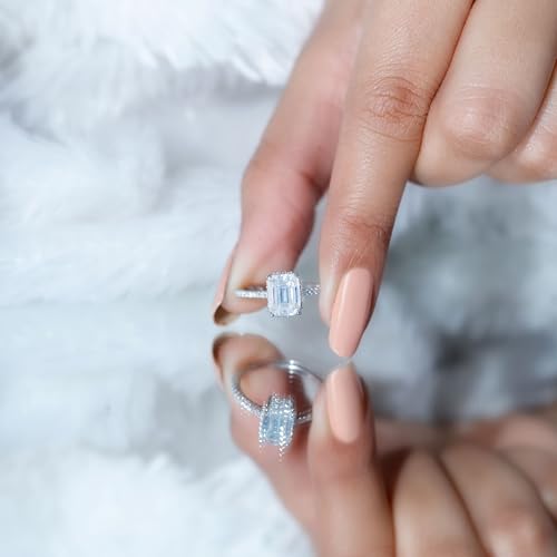 Certified Moissanite 6X8mm Emerald Cut Engagement Ring in Silver, D-Vs1 Quality, Moissanite Solitaire Ring - Gift For Her 5