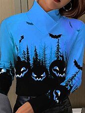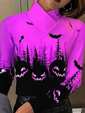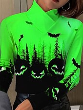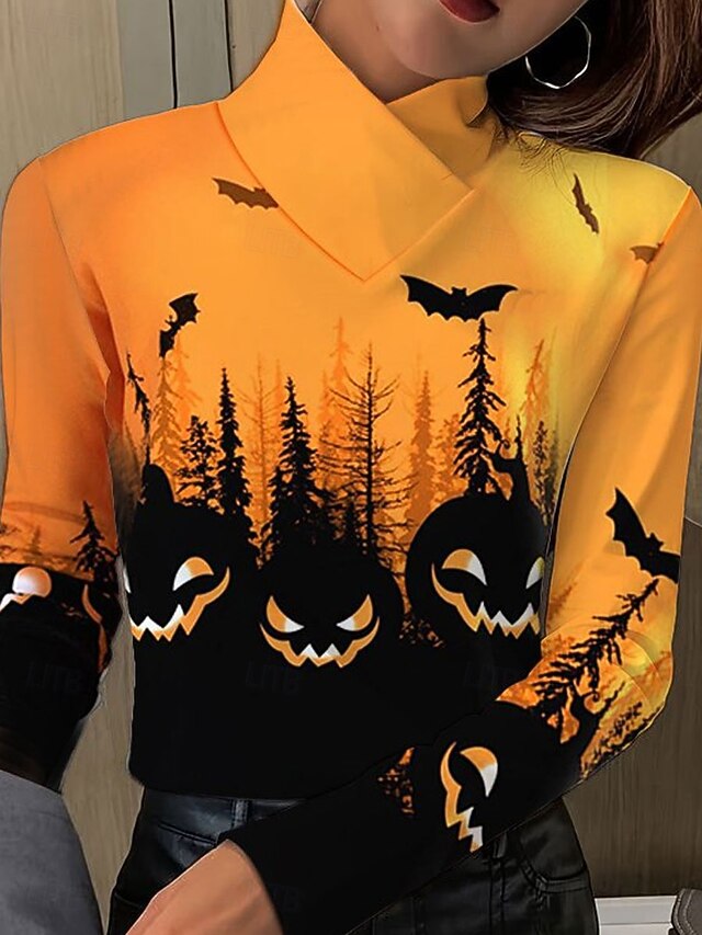 More information about Halloween Women's T shirt Pumpkin Graphic Elegant Vintage Stylish Long Sleeve High Neck Regular Tops Daily Print Blue Purple Orange Green Spring Fall Winter