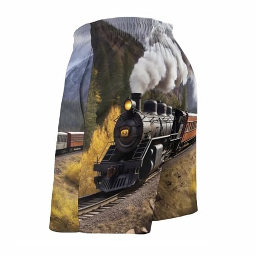 HOT ! Mens Shorts Steam Locomotive Train Men Swim Trunks Quick-Dry Beach Shorts with Drawstring Pocket Bathing Suit