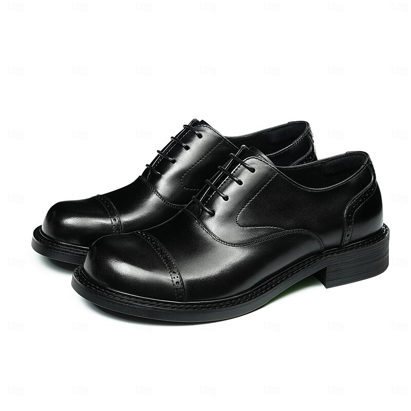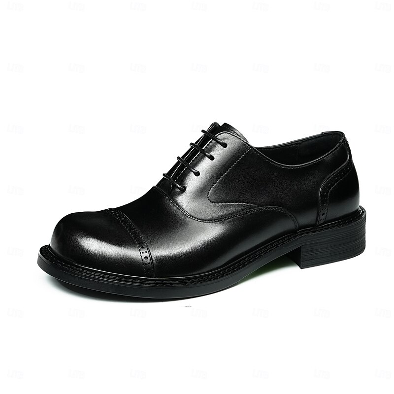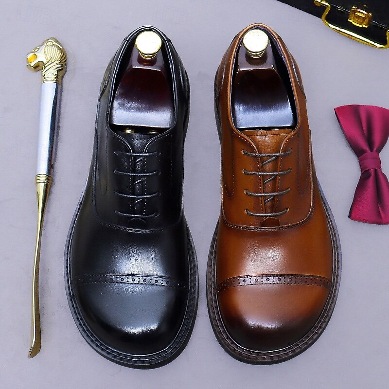 HOT ! Men's Genuine Leather Oxford Cap Toe Dress Shoes- First Layer Cowhide Formal Lace-Up Classic Business Shoes for Office, Weddings, and Professional Attire