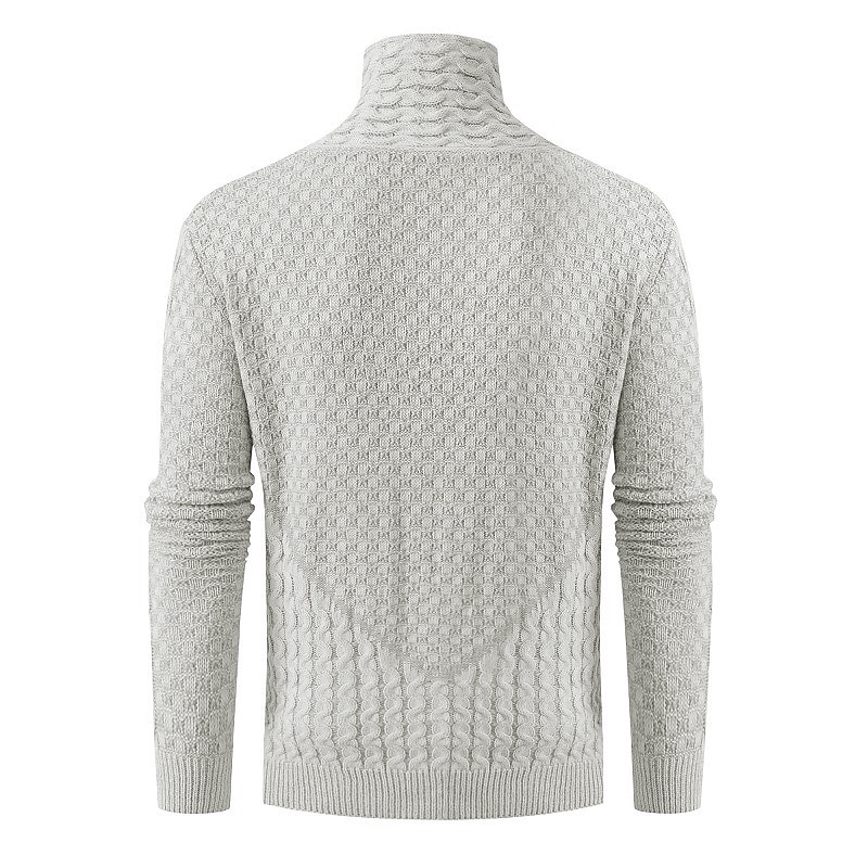 Highlights - Perfect for the winter season, ensuring warmth and comfort. - Features long sleeves, providing extra coverage and protection from the cold. - Specifically designed for men, catering to their unique needs and preferences. - Stylish turtleneck neckline adds a trendy and fashionable touch. - Crafted with a ribbed knit style, adding texture and visual appeal to the garment.