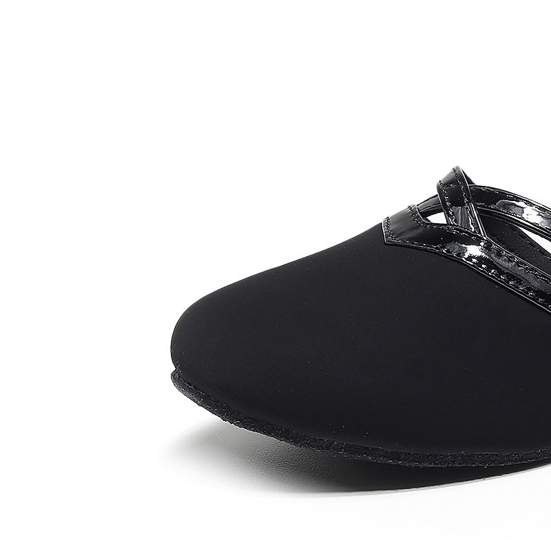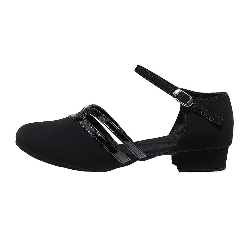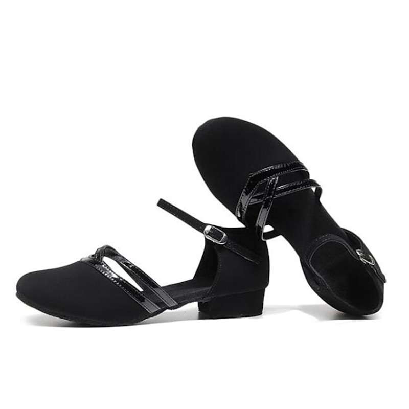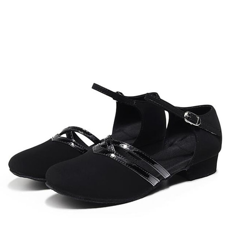 Highlights [Fabric] Crafted from a blend of cotton and PU, the girls' black dance shoes offer a soft and durable upper that ensures comfort throughout performances. The outsole is made of suede, providing excellent grip and flexibility on dance floors. [Style] These versatile shoes feature a sleek, pointed toe and a low block heel for stability, making them suitable for both dance practices and performances. The sophisticated design enhances the line of the leg, creating an elegant silhouette ideal for ballet, jazz, and modern dance. [Design Highlights] The shoes are adorned with two glossy black straps that crisscross elegantly over the front, adding a modern touch of sophistication. An adjustable ankle buckle ensures a secure and customizable fit for optimal comfort and performance. [Occasions] Perfect for stage performances, indoor practices, and professional dance settings, these shoes are designed to meet the demands of various dance styles while maintaining a stylish appearance. They are suitable for dancers who require both aesthetics and functionality in their footwear. [Size Range] Available in a range of sizes from US4-4.5 to US10.5, these dance shoes cater to young girls and women, offering a comfortable fit for different foot sizes.