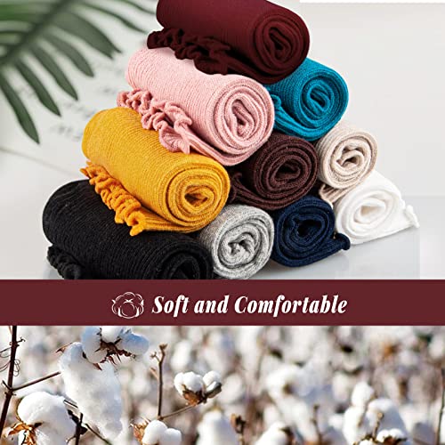 Women's Ruffle High Ankle Socks - Cute Lettuce Trim, Solid Color Casual 6