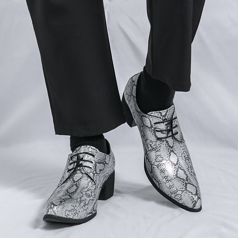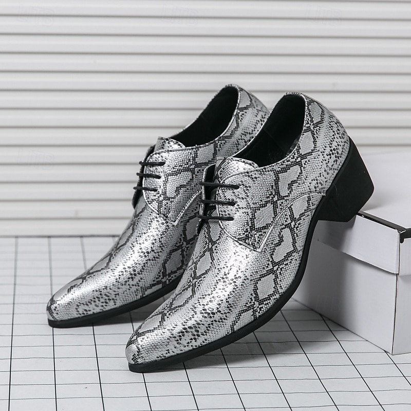 More information about Men's Exotic Python Print Lace-Up Oxfords with Pointed Toe - Perfect for Evening Events and Fashion Statements