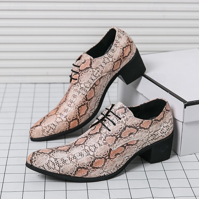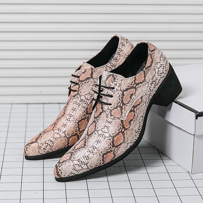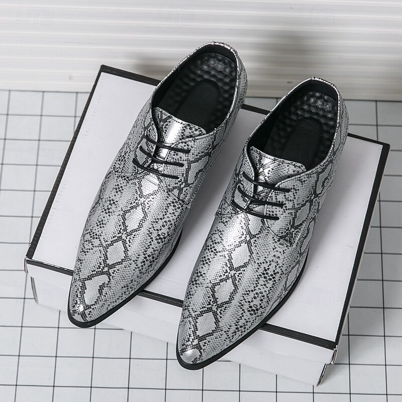 Men's Exotic Python Print Lace-Up Oxfords with Pointed Toe - Perfect for Evening Events and Fashion Statements 1