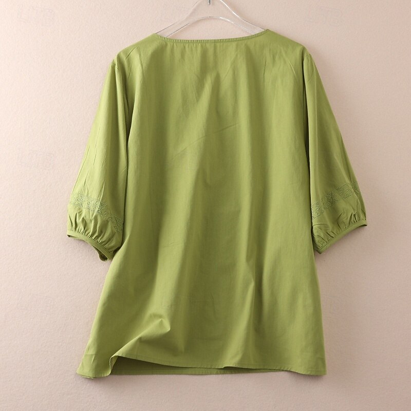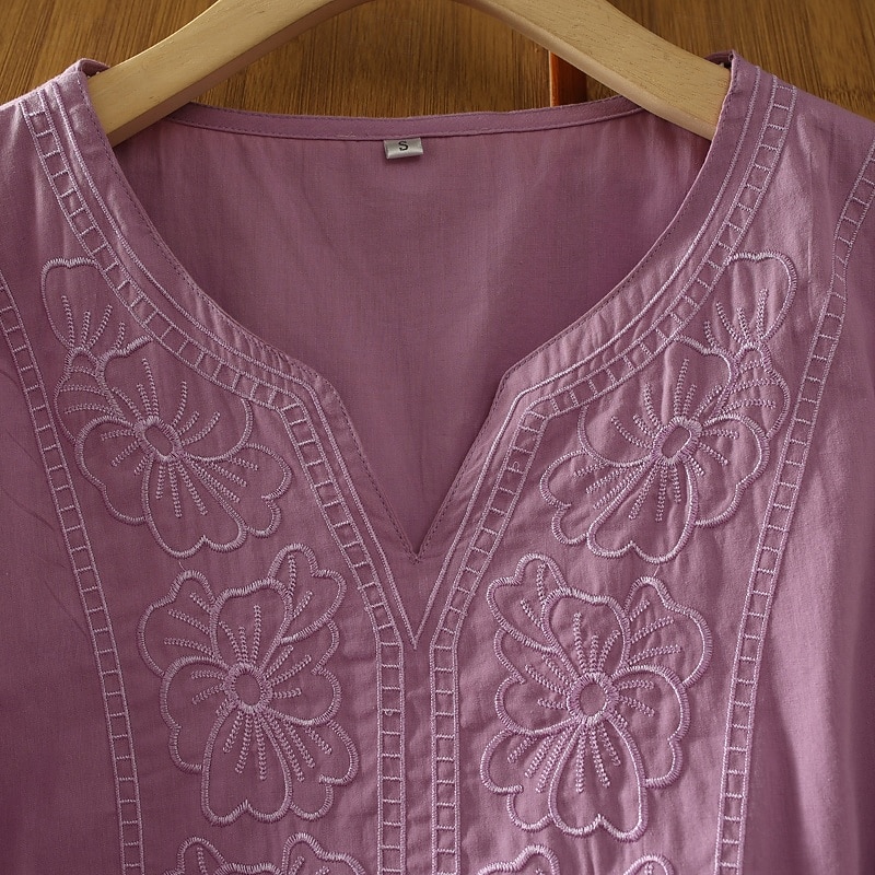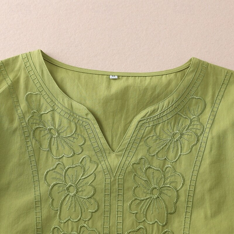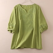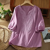 More information about Women's Linen Shirt Boho Shirt Blouse Flower Casual Boho Short Sleeve V Neck Regular Tops Daily Going out Print Purple Green Summer