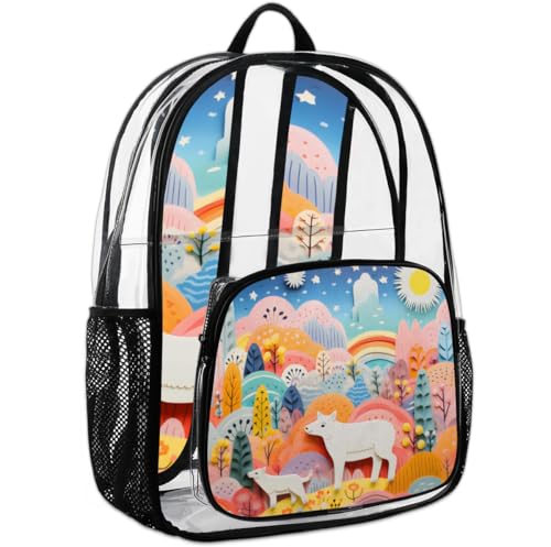More information about Abstract Flowers Trees Sun Animals Clear Backpack Stadium Approved PVC Backpacks for Adults Heavy Duty Clear Bag for Work Security Travel College
