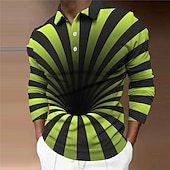 Men's Graphic Polo Shirts Golf Shirt Long Sleeve Polo Shirts Collared Shirts Casual Vacation Wear Rave Wear Party Outfits 3D Print Buttons Black-White Black+Black Black 10