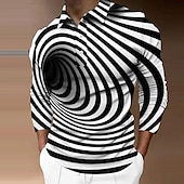 HOT ! Men's Graphic Polo Shirts Golf Shirt Long Sleeve Polo Shirts Collared Shirts Casual Vacation Wear Rave Wear Party Outfits 3D Print Buttons Black-White Black+Black Black