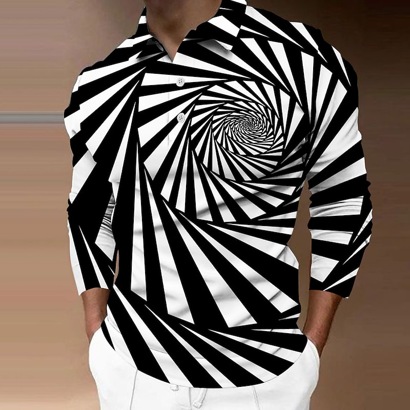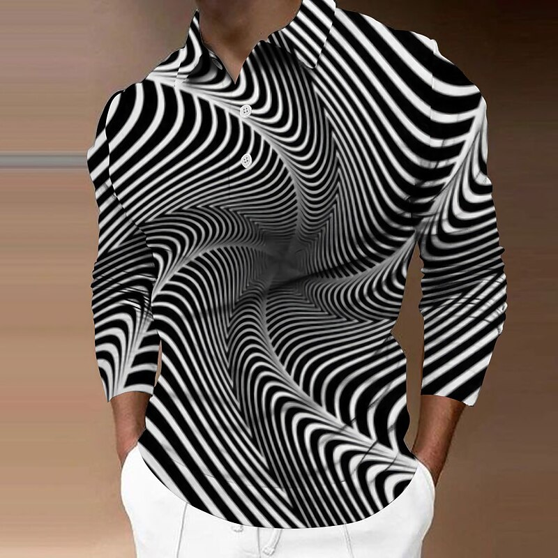 More information about Men's Graphic Polo Shirts Golf Shirt Long Sleeve Polo Shirts Collared Shirts Casual Vacation Wear Rave Wear Party Outfits 3D Print Buttons Black-White Black+Black Black