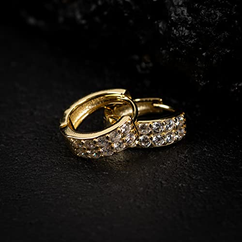 Yellow Gold Plated 925 Sterling SilverTwo Row Iced Shiny 5A Cz Trendy Classic Unisex Ice Out 12mm Hoops Hypoallergenic Huggie Hoop Earrings For Men Women Jewelry 5