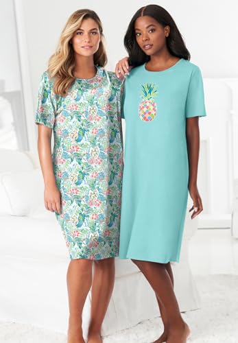 HOT ! Dreams & Co. Plus Size 2-Pack Short-Sleeve Sleepshirt