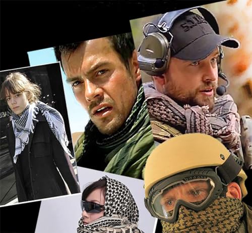 • Large desert scarf allows for different wearing ways to protects your head and neck from sun, sand, wind and dust. Neck scarf, Mask Scarf, Head Scarf, etc. It's great to use for hunting, shooting, hiking, climbing, motorcycle, paintball game, working, daily wear, also can use for women's fashion dress up scarf, office lady fashion dress scarf, air condition scarf, etc.