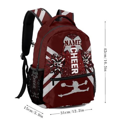 HOT ! Cheer Maroon Cheerleader Print Personalized Backpack with Name Waterproof Bag for Holiday Birthday Gift for Travel, 12.2(L) x5.9(W) x16.5(H) inch