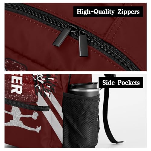 Cheer Maroon Cheerleader Print Personalized Backpack with Name Waterproof Bag for Holiday Birthday Gift for Travel, 12.2(L) x5.9(W) x16.5(H) inch 6