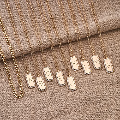• Layered Necklaces: 2 layering initial necklaces for women trendy jewelry, gold layered figaro chain letter initial necklaces set with square charm, engraved with initial and cubic zirconia. Large initial pendant dainty necklace for women jewelry. The letter necklace as a reminder that you are one and only