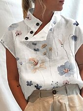 More information about Women's Blouse Floral Stylish Casual Short Sleeve High Neck Regular Tops Daily Buttons Print White Red Blue Summer