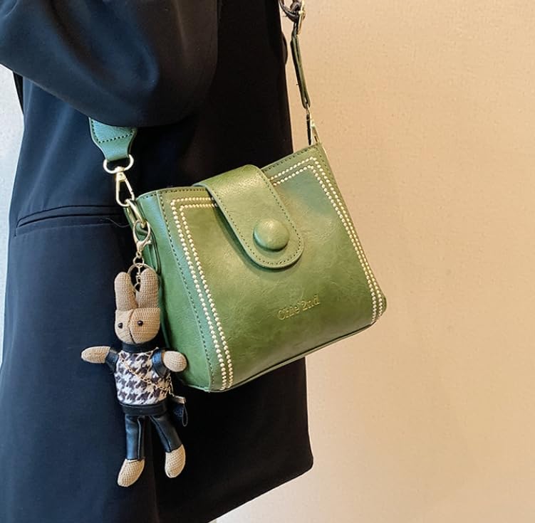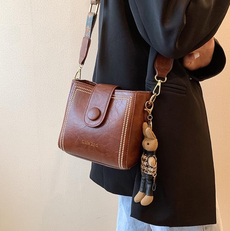 Bucket Bag, Womens Retro Water Bucket Shoulder Bag, with Adjustable Wide Shoulder Strap, Bunny Charm