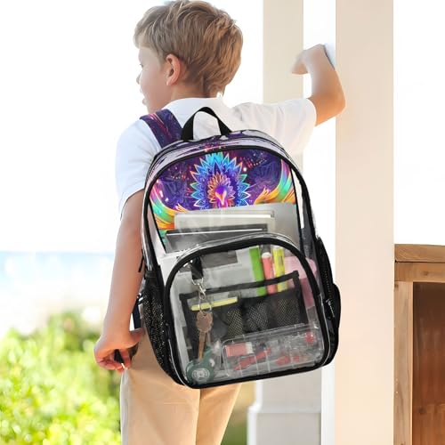 Colorful Phoenix Bird Clear Backpack Heavy Duty See Through Transparent PVC BookBag for Kids Boy Girl School Work 7